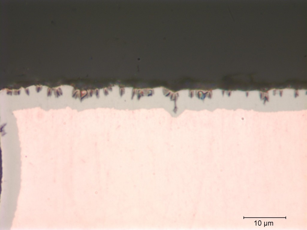 These images show a gold ball bond on an integrated circuit. In the top image we see the sample after it was mechanically prepared/polished. The next image was taken after the sample was ion milled.